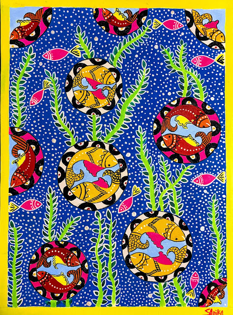 Every artist makes a choice about an art form that he or she would like to pursue seriously. For me it had to be Madhubani because this art form stole my heart right away and I knew this is what I wanted to create. The liveliness and vibrant colors used in this art form would catch anyone’s attention. Madhubani paintings take me back to my roots and remind me of my culturally rich India.